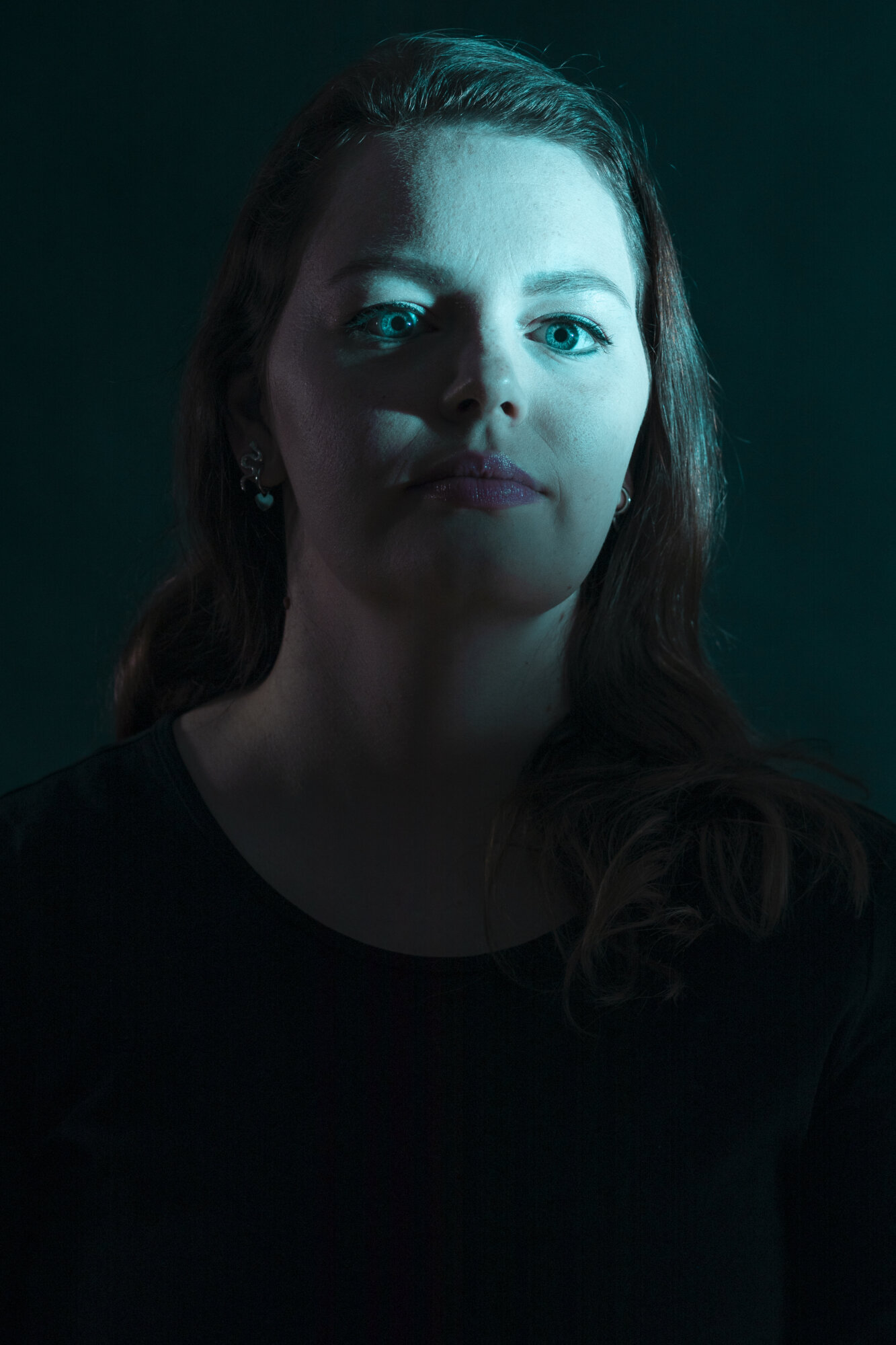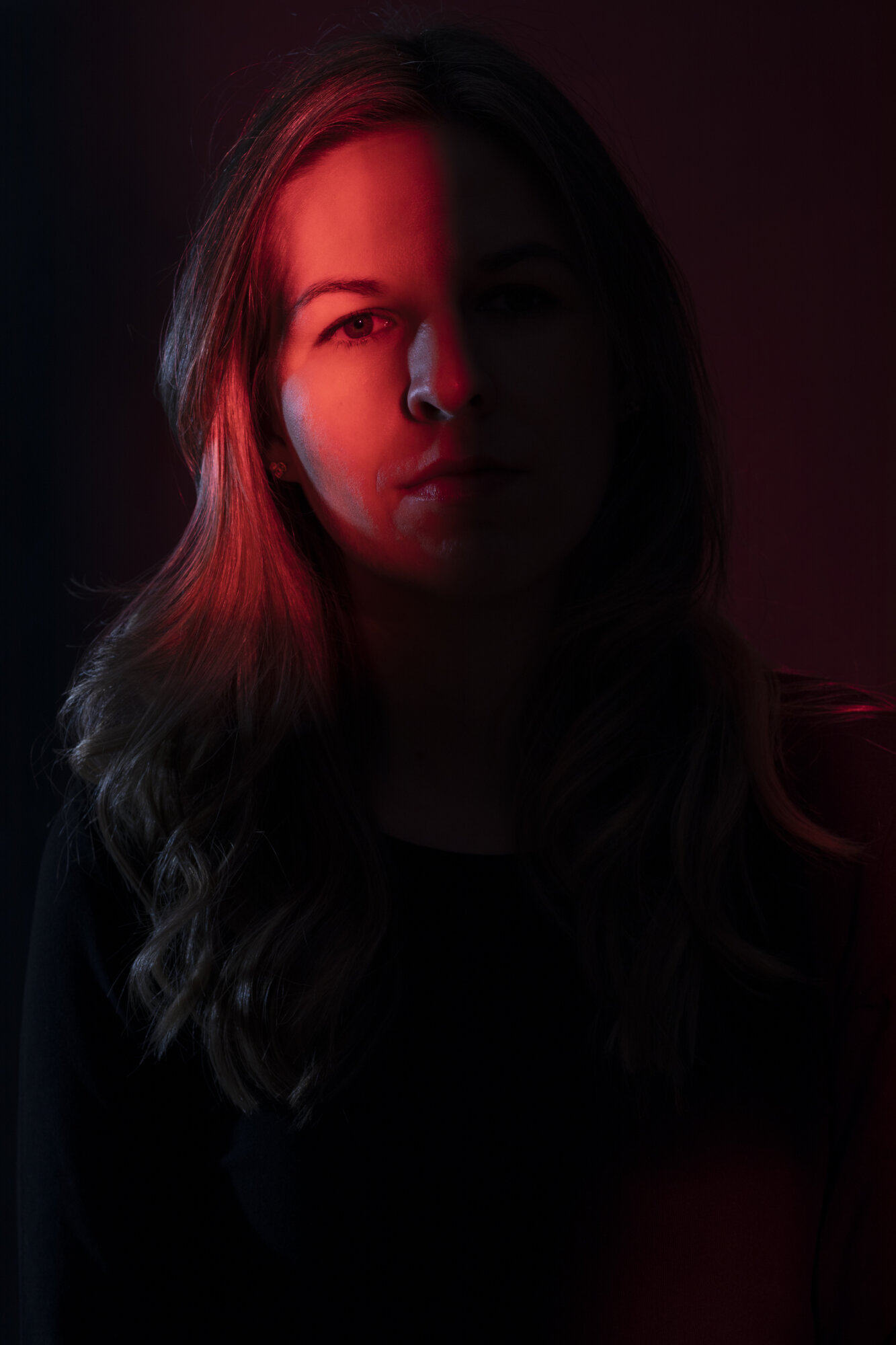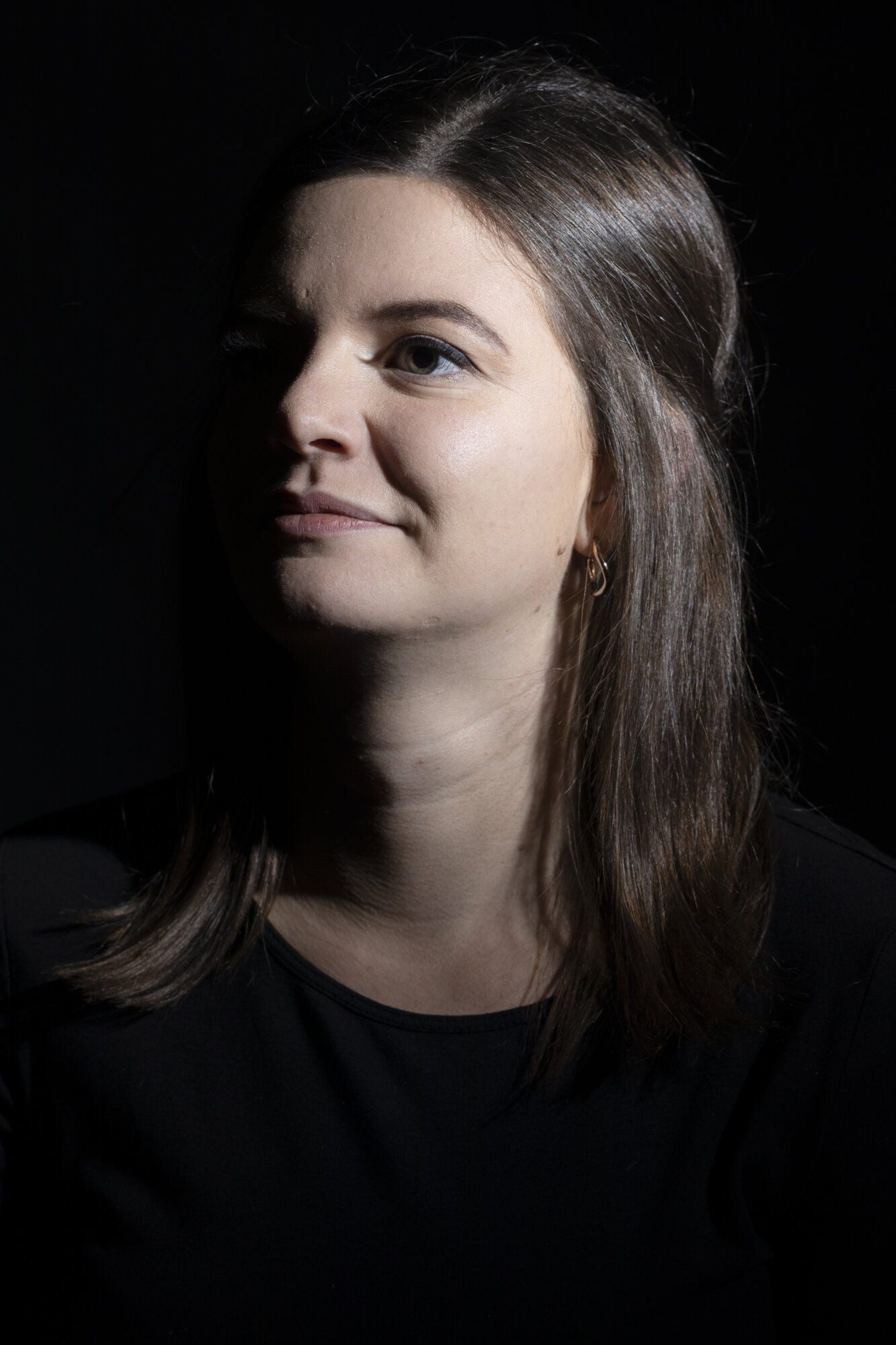 Anschließend las Person A den von Person B geschrieben Kritikbrief vor. Während Person A las, wurde Person B im Low Key Setting fotografiert. Danach wurden die Rollen getauscht.
