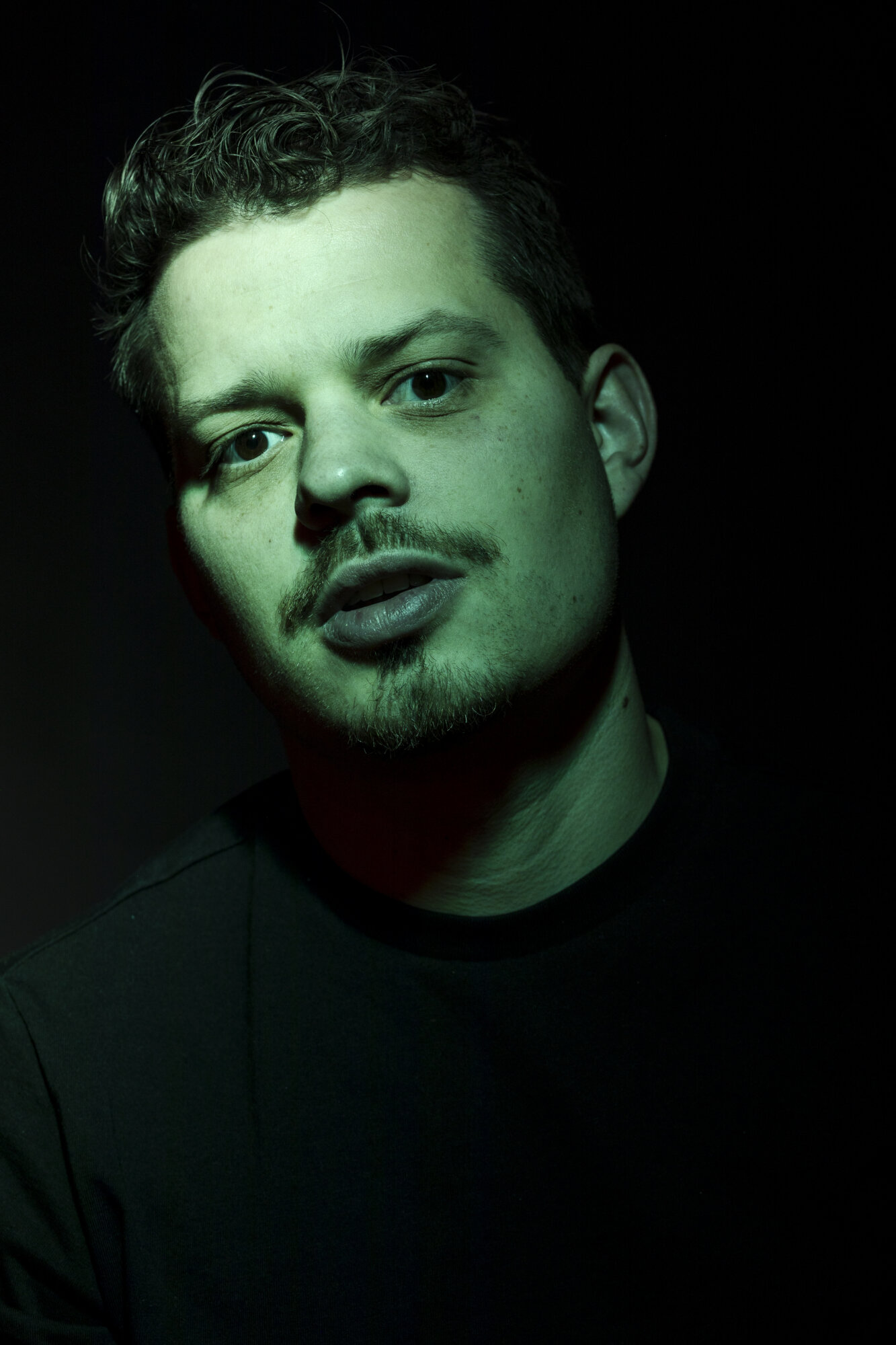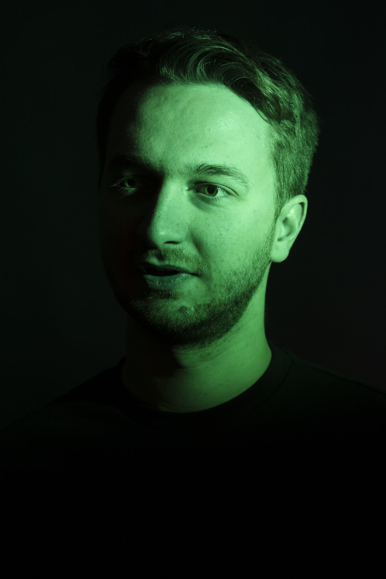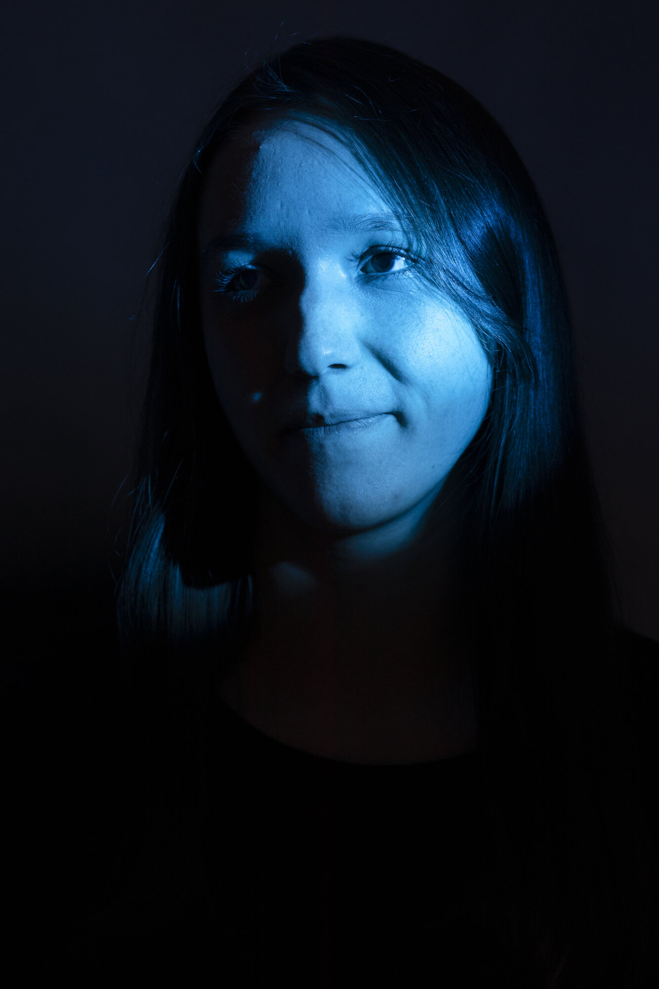 Anschließend las Person A den von Person B geschrieben Kritikbrief vor. Während Person A las, wurde Person B im Low Key Setting fotografiert. Danach wurden die Rollen getauscht.