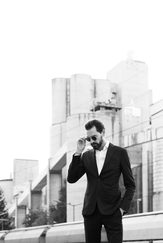 Mode Kampagne, Modell Leo vor dem Zementwerk Gmunden