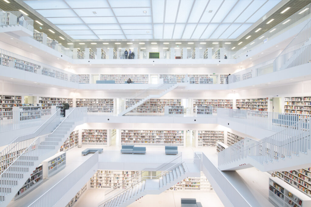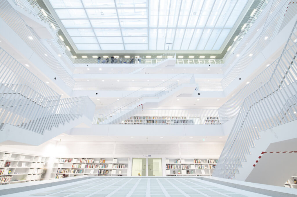 Folgende Serie habe ich ausgewählt, da ich mich zum ersten Mal gezielt auf den Weg machte um Architektur zu fotografieren. Ich organisierte mir eine Drehgenehmigung für die Stadtbibliothek Stuttgart und versuchte dort teils gelungen und teils (perspektivisch) verpatzt die architektonisch mich sehr ansprechende Bibliothek zu fotografieren. Ich habe mich für die Auswahl entschieden, weil es mir mehr Spaß machte als ursprünglich angenommen, da ich mich von genrespezifischen Formvorgaben und Regeln (Perspektive etc..) für normal recht schnell eingeengt fühle.