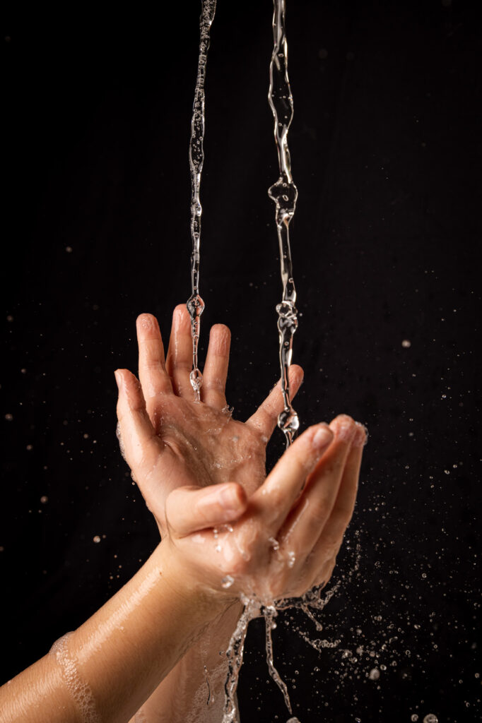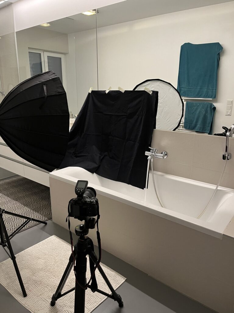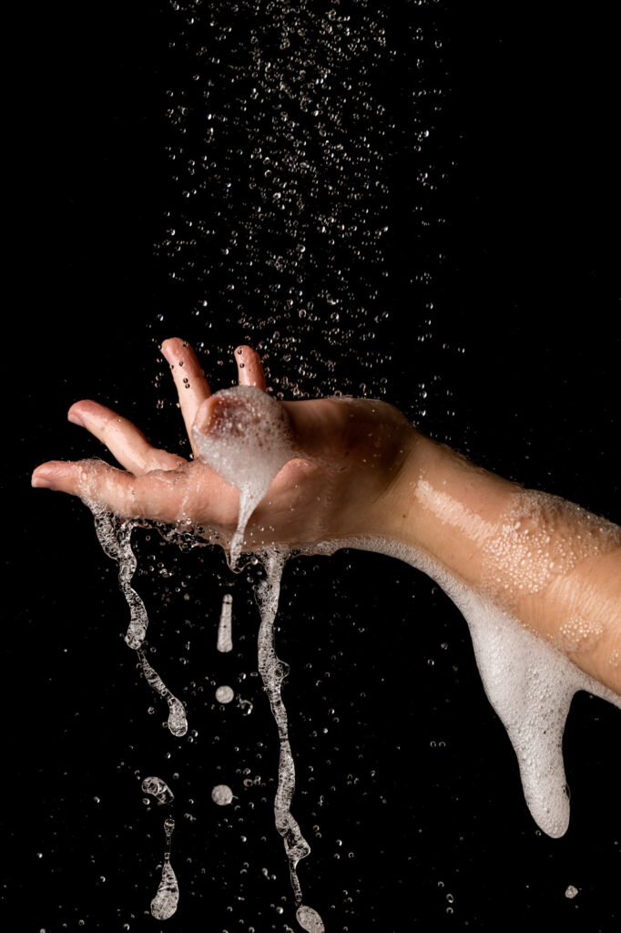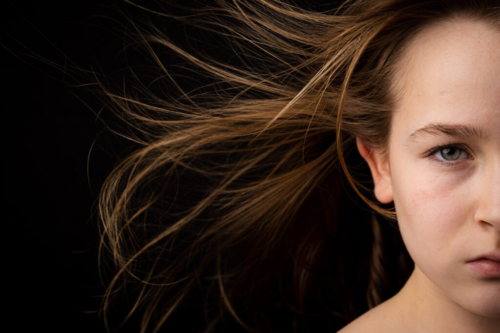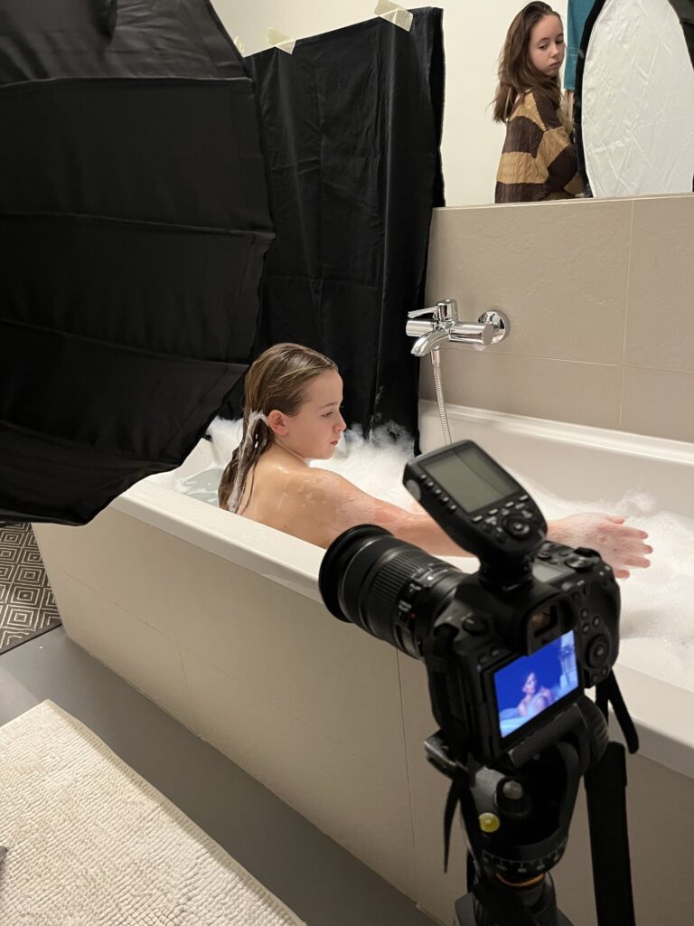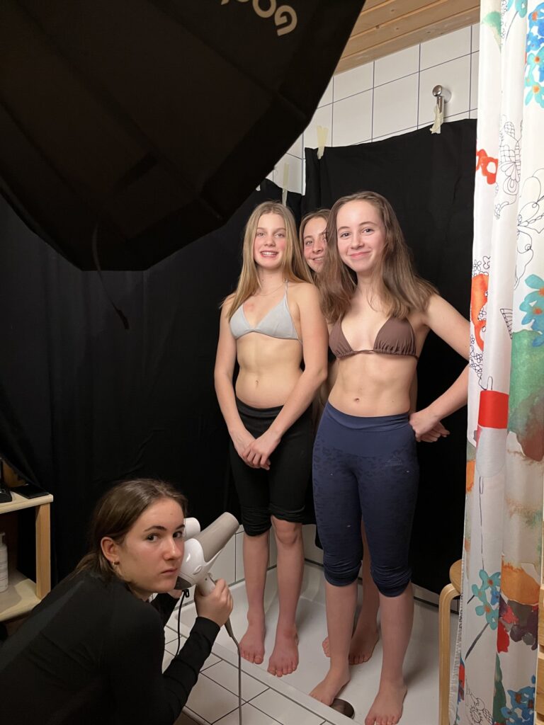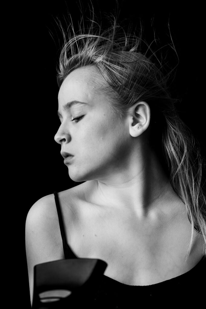 In meinen Aufnahmen friere ich die Bewegung von Wind und Wasser ein. Die Serie wurde in zwei verschiedenen Badezimmern mit sechs unterschiedlichen Models aufgenommen. Es wurde viel experimentiert, ausprobiert, geschüttet, geföhnt und gelacht bis ich zum gewünschten Ergebnis gelang. So entstanden 10 Farb- sowie 10 Schwarzweissaufnahmen die miteinander harmonieren.